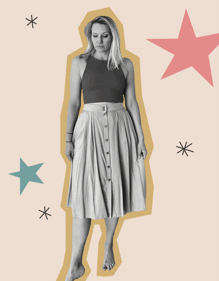 Propínací sukně jsou naším letním hitem. Jsou šité na míru, ale v zadní části pásku mají ještě krátkou část gumy.