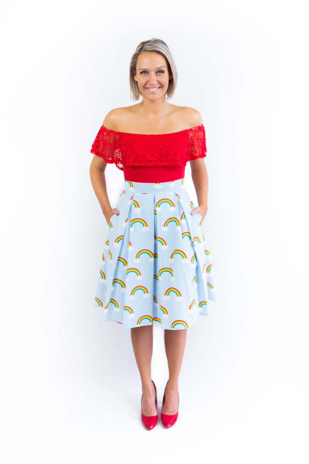 Pasová sukně na míru ve skládaném střihu, s podšívkou a vrstvou tylu, která vám zaručí krásný a nadýchaný tvar. Sukně má velké a praktické kapsy a při správném výběru materiálu je skvělá na každodenní a celoroční nošení.