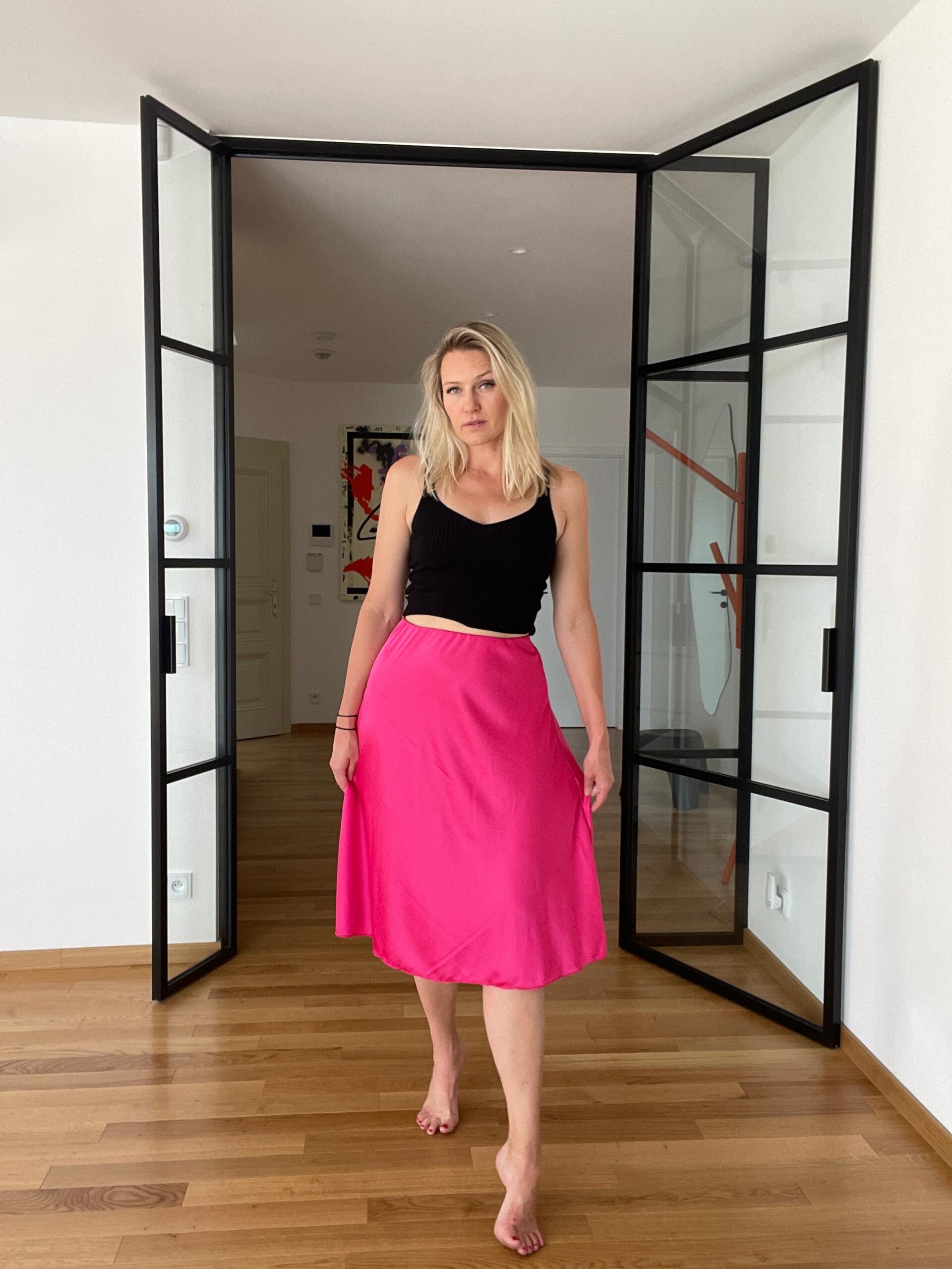 Na první fotce v galerii vidíte, jako příklad, sukýnku v krátkém střihu :